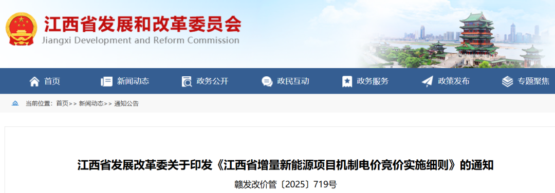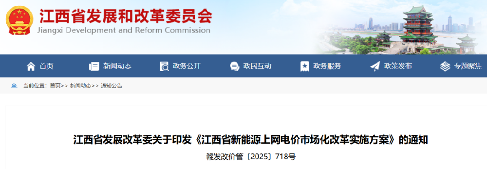 9月30日,江西省發(fā)改委印發(fā)《江西省增量新能源項目機制電價競價實施細則》、《江西省新能源上網(wǎng)電價市場化改革實施方案》、《江西省新能源可持續(xù)發(fā)展價格結(jié)算機制差價結(jié)算細則》。 存量項目 機制電量:機制電量上限原則上與現(xiàn)行具有保障性質(zhì)的相關電量規(guī)模政策相銜接,已參與綠電交易的新能源不納入機制電量范圍。 機制電價:統(tǒng)一按江西省煤電基準價執(zhí)行(0.4143元/千瓦時) 執(zhí)行期限:執(zhí)行期限按照全生命周期合理利用小時數(shù)剩余小時數(shù)與投產(chǎn)滿20年較早者執(zhí)行。 增量項目 機制電量:每年新增納入機制的電量規(guī)模,綜合考慮當年增量新能源項目裝機容量、合理利用小時數(shù)、用戶承受能力、非水電可再生能源電力消納責任權(quán)重完成情況等因素確定。 單個項目的機制電量規(guī)?!苄履茉错椖垦b機容量×近三年全省同類項目平均利用小時數(shù)×(1-平均廠用電率)×上限比例。 機制電價:2025年首次競價設置風電、光伏兩種類型分別組織開展競價,后續(xù)批次競價視市場情況,調(diào)整組織形式、競價上限和下限價格。 執(zhí)行期限:根據(jù)同類項目回收初始投資的平均期限合理確定,起始時間按項目申報的投產(chǎn)時間確定,入選時已投產(chǎn)的項目按入選時間確定。 具體見下: 各設區(qū)市發(fā)展改革委,國網(wǎng)江西省電力有限公司,江西電力交易中心有限公司,各有關經(jīng)營主體: 為貫徹落實《國家發(fā)展改革委國家能源局關于深化新能源上網(wǎng)電價市場化改革促進新能源高質(zhì)量發(fā)展的通知》(發(fā)改價格〔2025〕136號),加快構(gòu)建新型電力系統(tǒng),健全綠色低碳發(fā)展機制,我們制定了《江西省新能源上網(wǎng)電價市場化改革實施方案》?,F(xiàn)印發(fā)給你們,請認真組織落實。 2025年9月29日 江西省新能源上網(wǎng)電價市場化改革實施方案 為貫徹落實黨的二十屆三中全會精神和黨中央、國務院關于加快構(gòu)建新型電力系統(tǒng)、健全綠色低碳發(fā)展機制的決策部署,充分發(fā)揮市場在資源配置中的決定性作用,大力推動新能源高質(zhì)量發(fā)展,根據(jù)《國家發(fā)展改革委國家能源局關于深化新能源上網(wǎng)電價市場化改革促進新能源高質(zhì)量發(fā)展的通知》(發(fā)改價格〔2025〕136號)相關要求,結(jié)合我省實際,制定本實施方案。 一、推動新能源上網(wǎng)電價全面由市場形成 (一)推動新能源上網(wǎng)電量參與市場交易。省內(nèi)新能源項目上網(wǎng)電量原則上全部進入電力市場,上網(wǎng)電價通過市場交易形成。集中式風電、光伏項目(以下簡稱“集中式新能源”)原則上以報量報價方式直接參與市場交易。分散式風電、分布式光伏項目(以下簡稱“分布式新能源”),鼓勵直接或聚合后,以報量報價方式參與市場交易;對于未直接或聚合參與的,作為價格接受者參與市場交易。新能源參與市場后因報價等因素未上網(wǎng)電量,不納入新能源利用率統(tǒng)計與考核。享有財政補貼的新能源項目,全生命周期合理利用小時數(shù)內(nèi)的補貼標準按照原有規(guī)定執(zhí)行。 (二)完善現(xiàn)貨市場交易和價格機制。新能源項目可報量報價參與現(xiàn)貨交易,也可接受市場形成的價格?,F(xiàn)貨市場全電量按現(xiàn)貨市場價格結(jié)算,中長期合同電量按中長期合同價格與中長期結(jié)算參考點的現(xiàn)貨價格差值結(jié)算。支持分布式新能源直接或通過聚合方式參與現(xiàn)貨交易。新能源項目應全量參與日前可靠性機組組合和實時市場。新能源和用戶可自愿參與日前市場,支持用戶側(cè)報量報價參與日前市場,暫不具備條件的,允許用戶側(cè)按照在不超過最大用電功率范圍內(nèi)自主決策申報購買量,不進行偏差收益回收。考慮全省工商業(yè)用戶尖峰電價水平、新能源在電力市場外可獲得的其他收益等因素,對電力現(xiàn)貨市場申報、出清價格設定上下限,適時根據(jù)市場情況調(diào)整。除正常交易的市場限價之外,設置二級出清價格限值,并結(jié)合市場運行情況,適時完善限值及執(zhí)行方式。 (三)健全中長期市場交易和價格機制。不斷完善中長期市場交易規(guī)則,縮短交易周期,提高交易頻次,實現(xiàn)周、多日、逐日開市。允許供需雙方結(jié)合新能源出力特點,合理確定中長期合同的量價、曲線等內(nèi)容,開展分時段帶曲線交易。新能源參與中長期交易的申報電量上限按額定容量扣減機制電量對應容量后的最大上網(wǎng)電量確定,結(jié)算參考點可自行選擇為實時市場任一節(jié)點或統(tǒng)一結(jié)算點?,F(xiàn)階段,機制電量不再開展其他形式的差價結(jié)算,可由電網(wǎng)企業(yè)代表全體用戶與新能源場站簽訂機制電量中長期合約,合同價格明確為合同的參考結(jié)算價,相關電量同步計入用戶側(cè)簽約比例。適當放寬發(fā)電側(cè)中長期簽約電量比例要求,用戶側(cè)中長期簽約電量比例相應調(diào)整。 完善綠電交易機制,申報和成交價格應分別明確電能量價格和相應綠色電力證書(以下簡稱“綠證”)價格。納入機制的電量不再參與綠電交易,不重復獲得綠證收益。綠證結(jié)算電量按當月省內(nèi)綠電交易合同電量、發(fā)電企業(yè)扣除機制