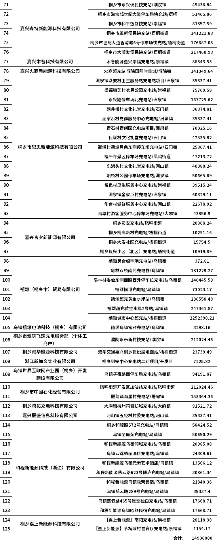 7月15日,浙江桐鄉(xiāng)市發(fā)展和改革局印發(fā)關(guān)于2024年度第二批新能源汽車充電基礎(chǔ)設(shè)施獎(jiǎng)勵(lì)資金補(bǔ)貼項(xiàng)目的二次公示。 根據(jù)2024年度第二批新能源汽車充電基礎(chǔ)設(shè)施獎(jiǎng)勵(lì)資金二次公示名單顯示,桐鄉(xiāng)市虎將安防工程有限公司、嘉興輝煌建筑材料有限公司、嘉興曉程新能源科技有限公司、桐鄉(xiāng)桐越充電服務(wù)有限公司、嘉興市哥譚充電服務(wù)有限公司、桐鄉(xiāng)紫浩充電服務(wù)有限公司、桐鄉(xiāng)市極能新能源有限公司、嘉興聚明新能源科技有限公司、星派(嘉興)能源科技有限公司、桐鄉(xiāng)市電小圈充電服務(wù)有限公司、桐鄉(xiāng)市綠巨人能源科技有限公司等44家企業(yè),125座充電站獲獎(jiǎng)補(bǔ)資金。 補(bǔ)貼金額:14900000元。 文件如下: 關(guān)于2024年度第二批新能源汽車充電基礎(chǔ)設(shè)施獎(jiǎng)勵(lì)資金補(bǔ)貼項(xiàng)目的二次公示 根據(jù)《關(guān)于明確新能源汽車公用充電基礎(chǔ)設(shè)施獎(jiǎng)勵(lì)資金使用有關(guān)事項(xiàng)的通知》(桐發(fā)改〔2024〕45號(hào))及有關(guān)工作安排,桐鄉(xiāng)市發(fā)改局于2025年3月20日-4月4日啟動(dòng)2024年度第二批新能源汽車充電基礎(chǔ)設(shè)施獎(jiǎng)勵(lì)資金補(bǔ)貼申報(bào)工作,并于2025年6月13日-6月15日對(duì)補(bǔ)貼名單及補(bǔ)貼金額進(jìn)行了公示?,F(xiàn)對(duì)公示期間提出異議并審核通過(guò)的名單進(jìn)行補(bǔ)充。 現(xiàn)予二次公示,公示三天(2025年7月15日-7月17日),公示三天內(nèi)如有異議,請(qǐng)向桐鄉(xiāng)市發(fā)展和改革局反映。 聯(lián)系電話:0573-88028700。 2024年度第二批新能源汽車充電基礎(chǔ)設(shè)施獎(jiǎng)勵(lì)資金二次公示名單.xls 桐鄉(xiāng)市發(fā)展和改革局 2025年7月15日 來(lái)源:桐鄉(xiāng)市發(fā)展和改革局